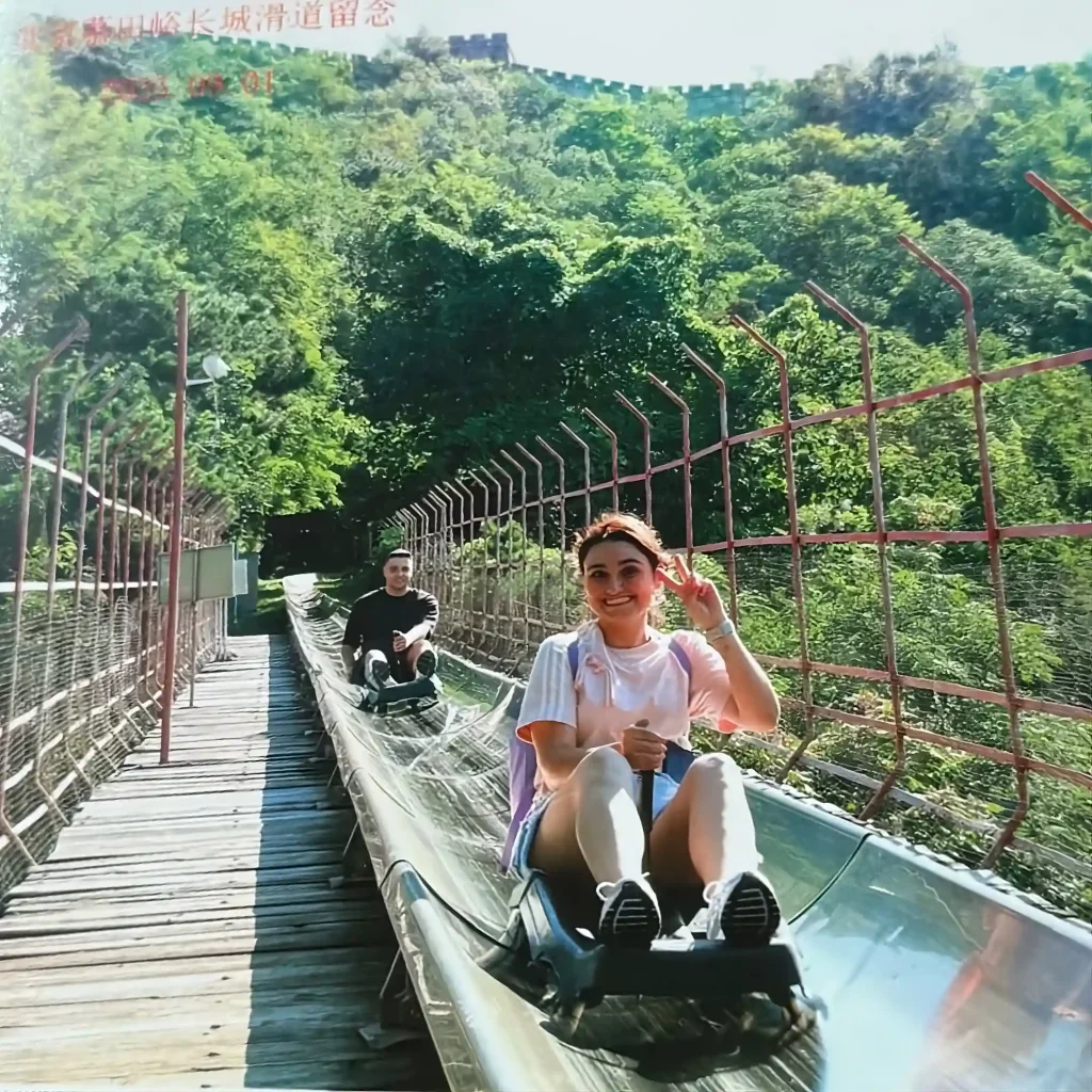 Para bajar la Muralla China en tobogán el billete lo puedes comprar allí mismo y cuesta unos 100 CNY (puedes hacerlo abajo antes del teleférico o arriba, justo en la entrada del tobogán). Si dudas hazlo, es muy divertido.
