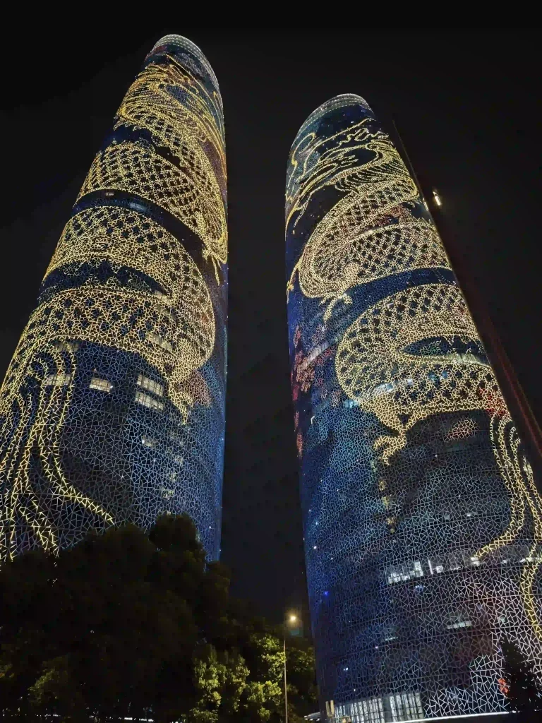 Las Chengdu Twin Towers son el icono nocturno del Financial City: dos rascacielos gemelos que cada noche se iluminan con un show de luces sobre sus fachadas donde se van reproduciendo diferentes animaciones. La parada de metro Financial City (Línea 1) te deja al justo debajo.