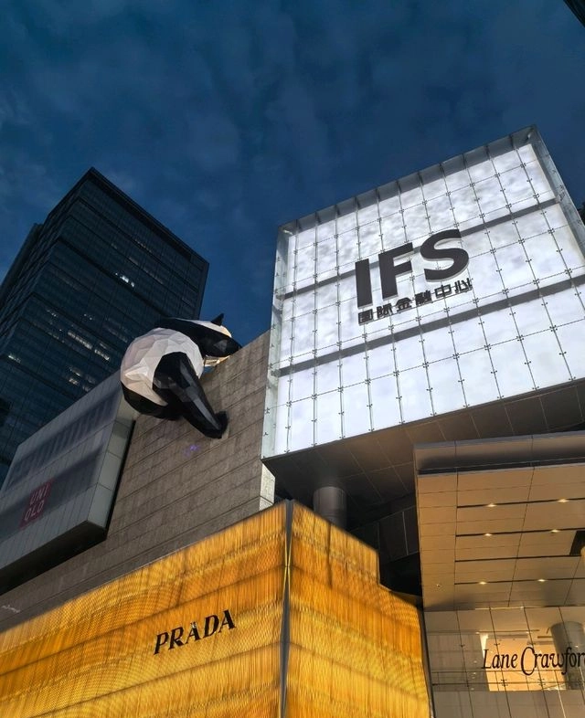 Uno de los iconos de la zona es el panda gigante “trepando” la fachada de un centro comercial (IFS): puedes verlo desde la calle y también subir a las terrazas superiores para una vista cercana desde arriba. Es la foto más buscada de la zona y un buen punto para orientarte.