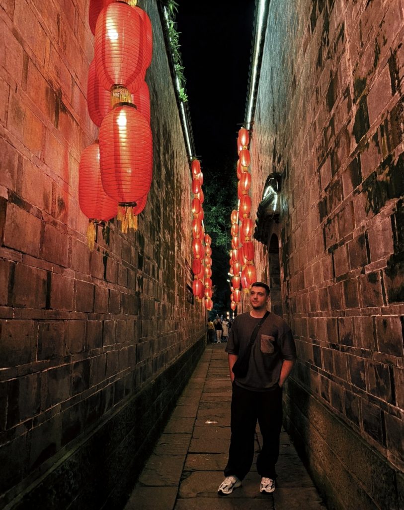 Muy cerca de People’s Park está Kuan Zhai Alley, uno de nuestros rincones favoritos de Chengdu. Es un conjunto de callejones tradicionales con casas Qing restauradas, tiendas de artesanía, cafeterías y restaurantes. Pasear por aquí es como viajar en el tiempo, pero con el toque moderno de la vida diaria.
