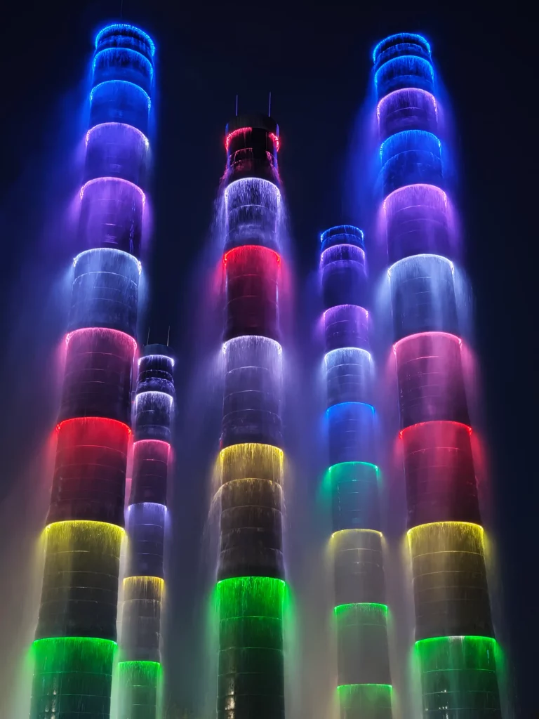 Aquí podrás encontrar las “fuentes de bambú” luminosas: enormes cañas de luz que cambian de color y crean un escenario perfecto para hacer fotos. Lo ideal es ir de noche, dar una vuelta por los centros comerciales, hacerte fotos con los bambús iluminados y quedarte a disfrutar del espectáculo de luces.