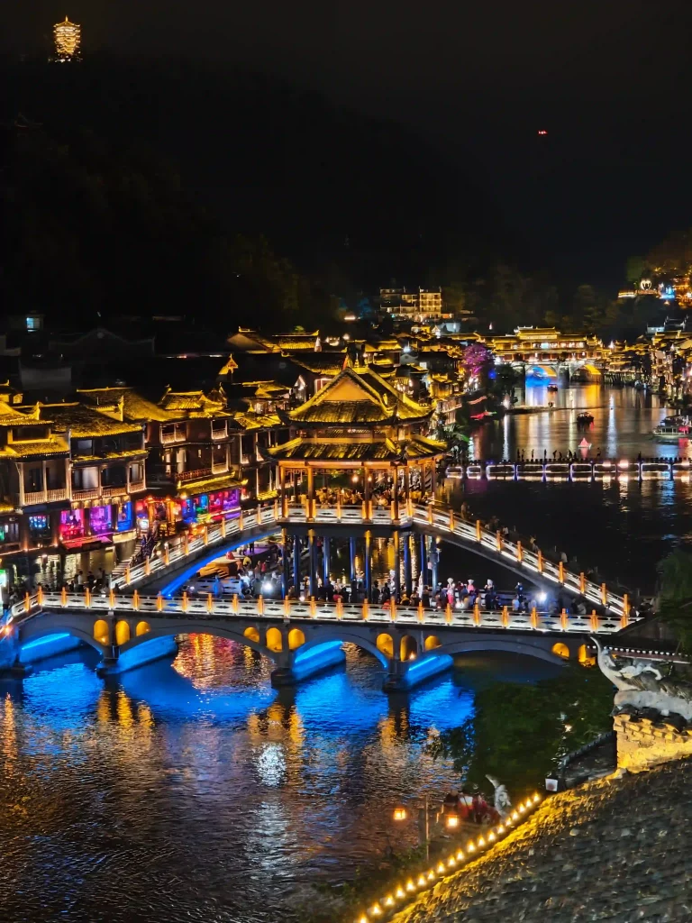 Snow Bridge es un puente moderno de dos niveles con pabellón central. Desde la parte más alta del puente se obtienen las mejores vistas de Fenghuang. De noche se ilumina y queda una foto espectacular.