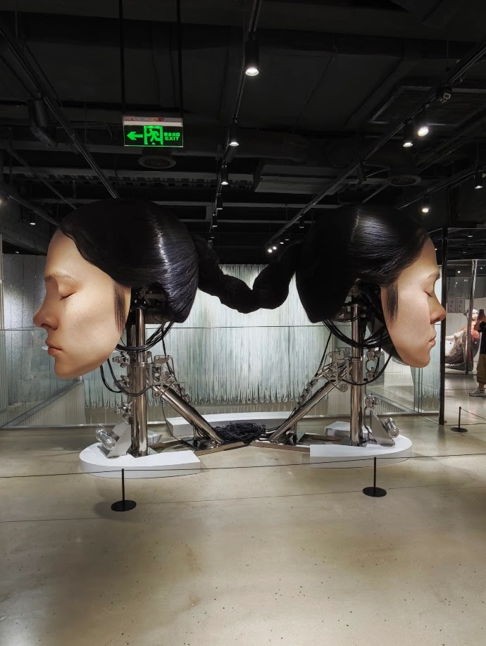 Muy cerca, en la misma zona, está también la tienda de Gentle Monster de varias plantas que parece más una galería de arte que una óptica convencional. Cada piso tiene instalaciones distintas, esculturas, juegos de luces y espacios expositivos futuristas que hacen que la visita sea toda una experiencia, incluso si no tienes intención de comprar gafas. En esta tienda están las dos caras robóticas que se unen con el pelo, que seguro habrás visto en redes sociales, y que se han convertido en una de las imágenes más icónicas del lugar.