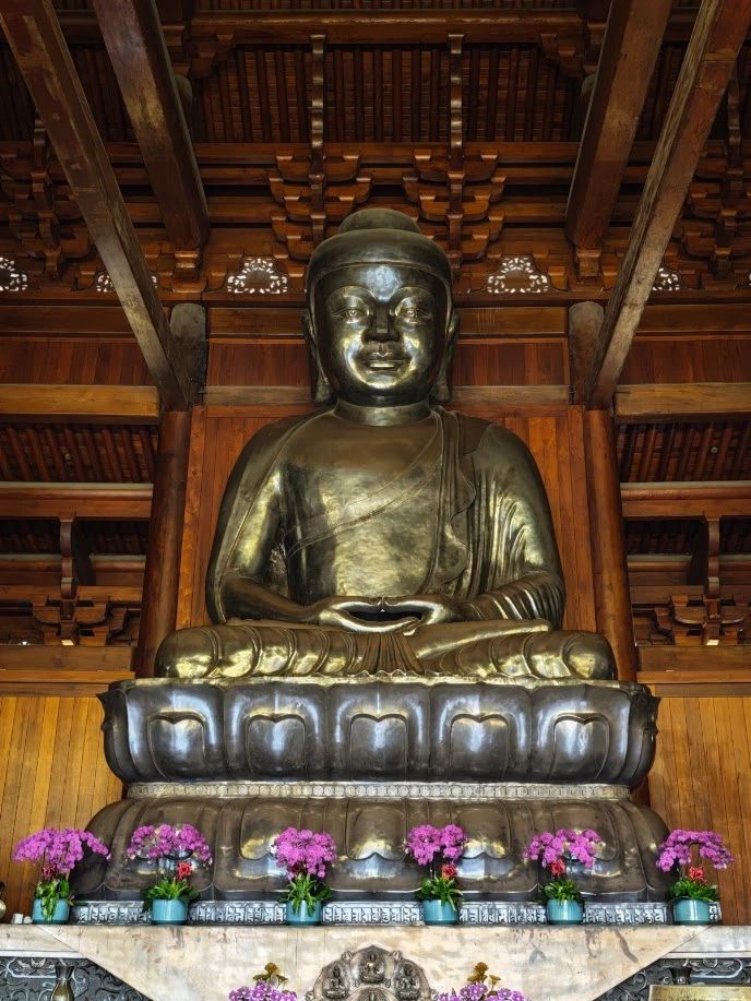Es un templo budista impresionante, con patios amplios, techos dorados. Uno de sus grandes tesoros es la estatua de Buda sentado más grande del país, con unos 3,8 metros de altura, además de una enorme campana de cobre de la dinastía Ming.