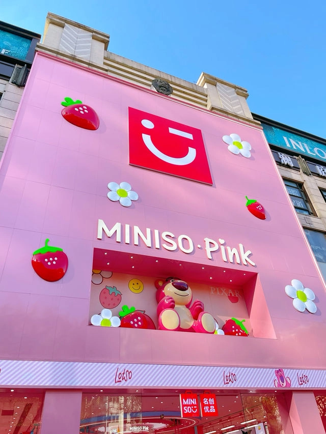 En Middle Huaihai Road se encuentra el famoso Miniso Pink, un enorme flagship de Miniso decorado íntegramente en tonos rosa. Nada más llegar te recibe un gran osito tipo Lotso en la entrada y, dentro, dos plantas llenas de gadgets, papelería, peluches, colecciones especiales de Disney y Sanrio y un montón de rincones pensados para hacerse fotos. Es un lugar perfecto para comprar souvenirs útiles y bonitos, pero también para disfrutar del espacio en sí, que parece casi un pequeño parque temático dedicado al rosa.