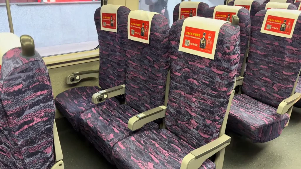 Una opción curiosa es que puedes pedir comida de las típicas cadenas de comida rápida desde el asiento mediante un QR que hay en el reposabrazos. Lo escaneas con Alipay y te aparecerá toda la información del tren, como por ejemplo la hora de las siguientes paradas y los restaurantes disponibles en la siguiente estación a los que se puede pedir comida. Esto deberás solicitarlo con antelación para que tengan tiempo de prepararlo. Una vez hecho el pedido y cuando el tren llegue a la estación correspondiente, un trabajador del tren recogerá la comida y te la llevará directamente al asiento.
